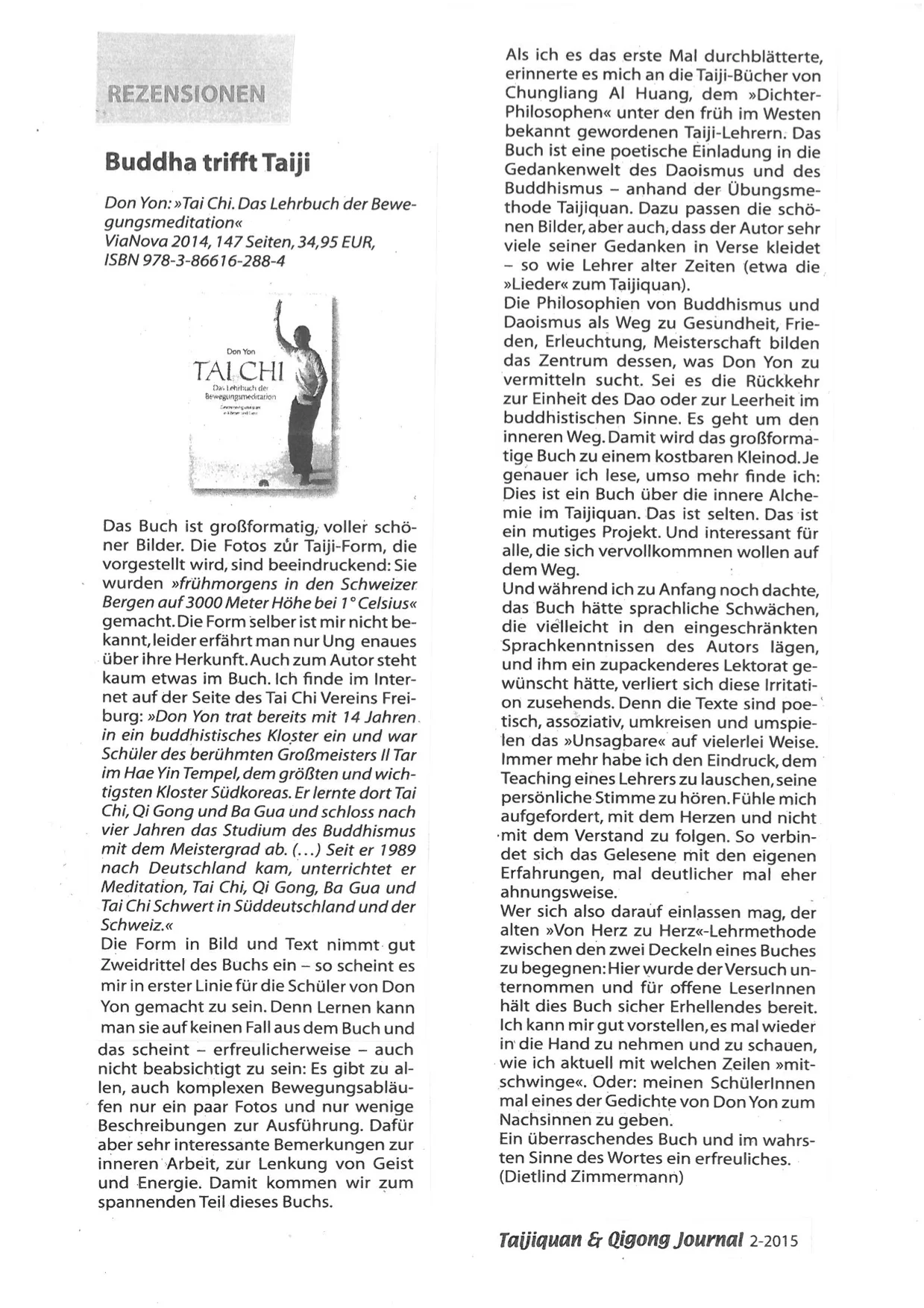 Doch das sind Äußerlichkeiten. Don Yön verkörpert etwas ganz Seltenes, nämlich die Einheit von Gefühlen, Geist und Körper. Wie anmutig er sich bewegt - selbst eine Katze würde Augen machen! Im Grunde ist es unbeschreiblich gerade in einem Land wie Deutschland, dessen Bewohner zwei Weltkriege in den Knochen haben, mit mannigfaltigsten Verspannungen heimgesucht und schon deshalb offen für Entspannung sind. Don Yön ist also Exot. Seine Bescheidenheit macht ihn nicht klein, seine Präsenz und Leichtigkeit wirken um so mehr. Wie er sich bewegt zwischen den Polen Spannung und Entspannung, ist für normal blockierte Zivilisationsgeschädigte schier unglaublich (die oft überall sind, nur nicht in ihrem Körper).